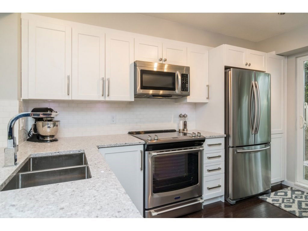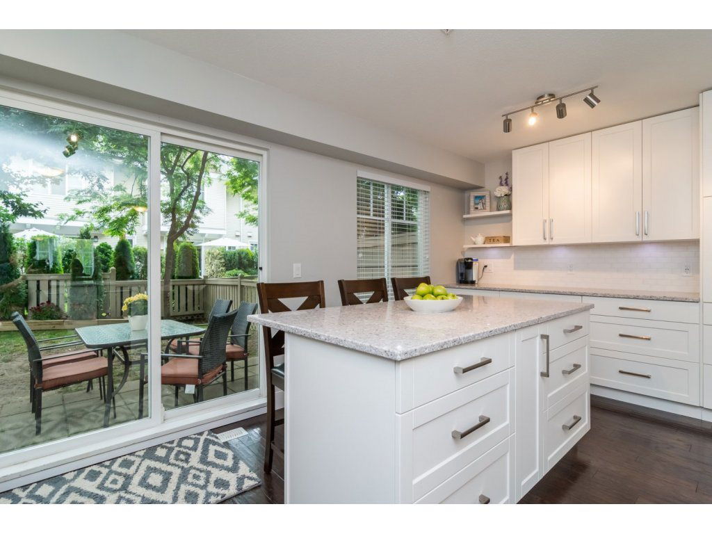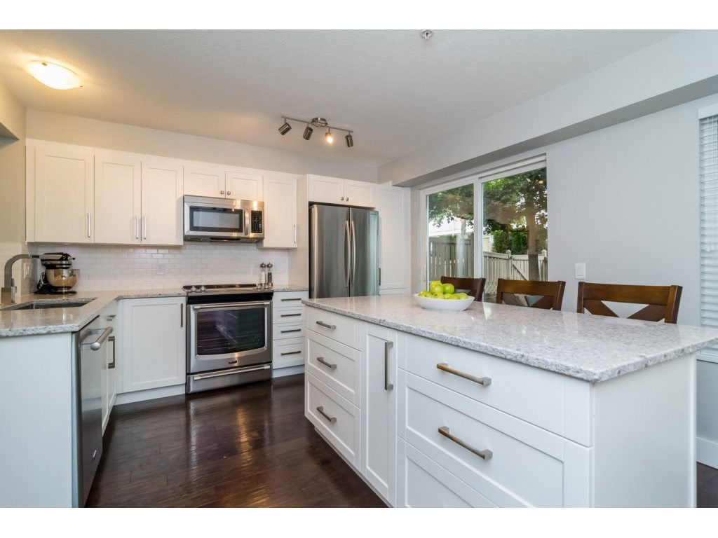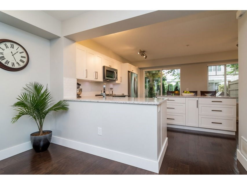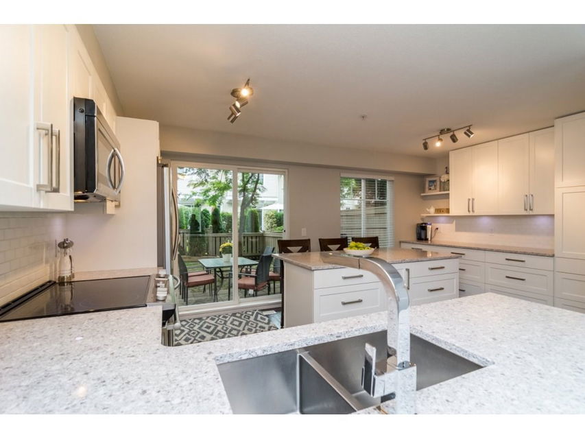 WOWSERS! Not too many townhouses like this one! Popular Amberleigh; 3 bedroom, 2 bath END unit with parking for 3 cars & right across from the beautiful outdoor Pool! Beautiful updates include: a brand spanking new kitchen, caeserstone quartz counter tops, soft close cabinetry w/undermount lighting, white subway tile backsplash, stainless appliances, gorgeous powered island and built-ins. Kitchen sliders lead to large fence back yard, great to watch the kids play from. New flooring throughout, handscraped engineered hardwood, new tiled foyer and new carpeting. New stone fireplace & new lighting throughout. Great complex with playground, pool, hot tub, exercise centre & clubhouse. Stone’s throw to shopping, schools & rec centre.