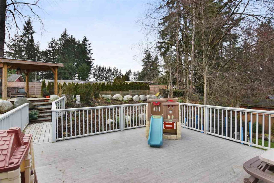 Brookswood Split – Excellent value for this 3bdrm home on a 1/4 acre lot. Main floor has 3bdrms, 1 full bath, laundry and an open plan kitchen/great room. Basement is partially finished with a games room and den. There is large unfinished area great for storage with a separate entry. The private and Sunny backyard has been professionally landscaped and offers excellent space for entertaining with a large deck and covered patio. Upgraded furnace with air conditioning, RV parking plus single carport. OPEN HOUSE Sunday, January 14th 1-3PM.